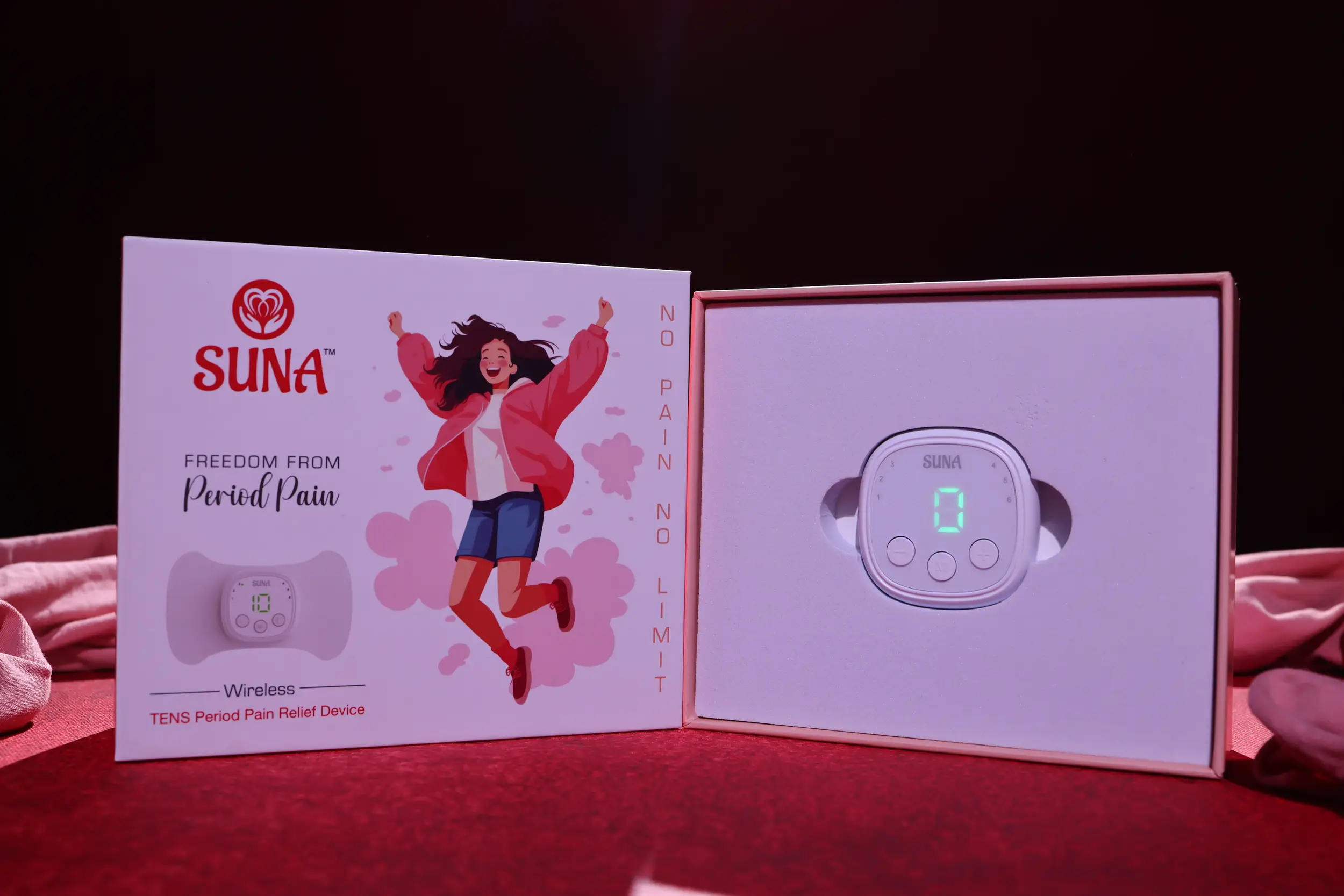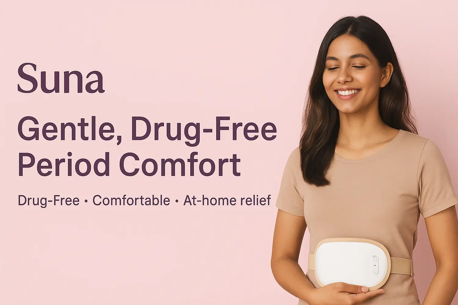 Suna uses gentle, non-invasive stimulation designed to promote relaxation and comfort during menstruation.